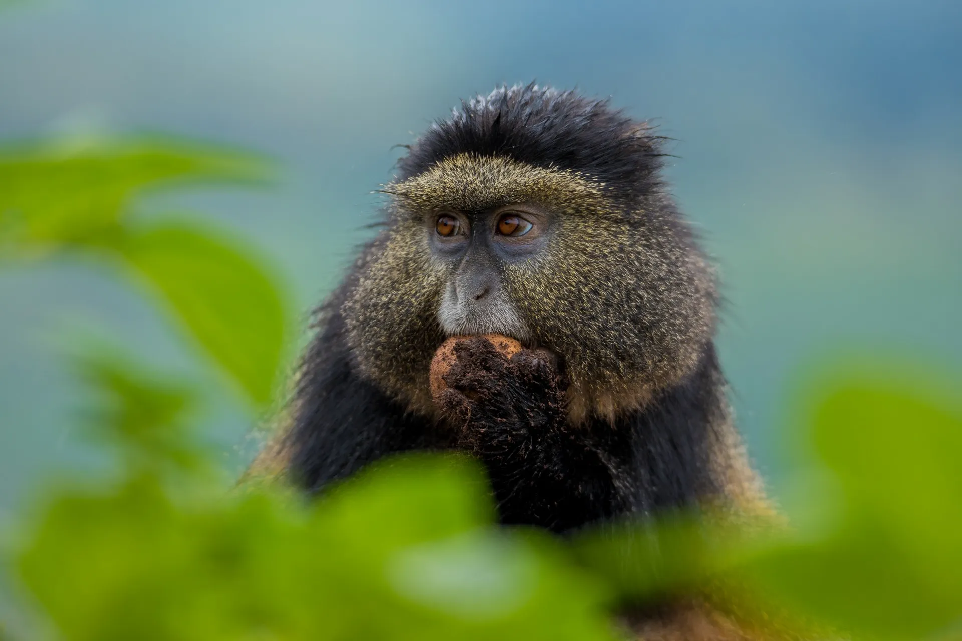 Gishwati National Park is home to a remarkable variety of wildlife. Visitors can expect to encounter chimpanzees, one of the park’s most iconic inhabitants, alongside golden monkeys, duikers, and other small primates. Over 200 bird species thrive in the forest, making the park an excellent destination for Rwanda birding safaris. Endemic and migratory birds alike add color and vitality to the rainforest canopy. Scenic trails wind through the forest, leading to waterfalls, bamboo groves, and streams. Unique vegetation, including towering mahogany, fig, and bamboo species, contributes to the park’s lush and tranquil environment. Additionally, the surrounding hills and valleys offer stunning panoramic views, enhancing the sense of immersion in Rwanda’s natural landscapes.